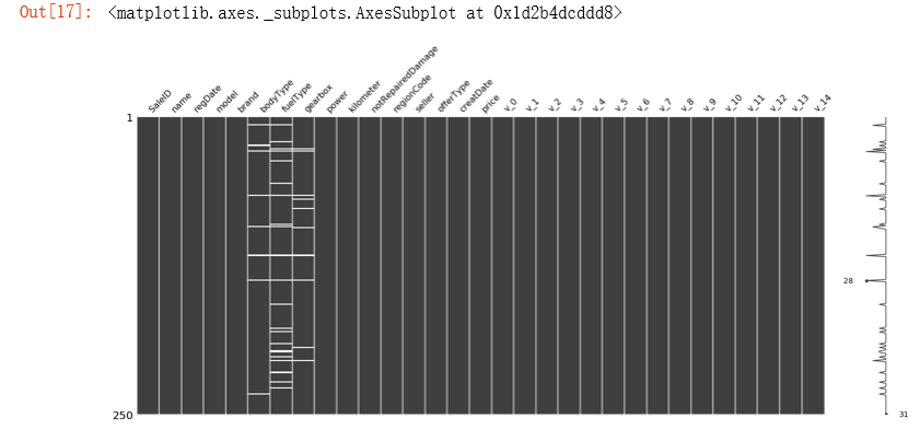 missingno:是一个用于缺失数据可视化和实用程序的小工具集,我们可以通过它直观的总结数据集的完整性。