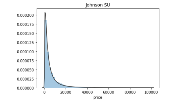 从图可以知道,价格很明显是不符合正态分布的,所在在进行回归之前,必须进行转换。最佳拟合无界约翰逊分布。