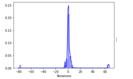 横坐标是偏度,纵坐标是该偏度值在总体 样本中占的百分比,从图中可以看出,-10~10的偏度更多一些,尤其是0附近的。