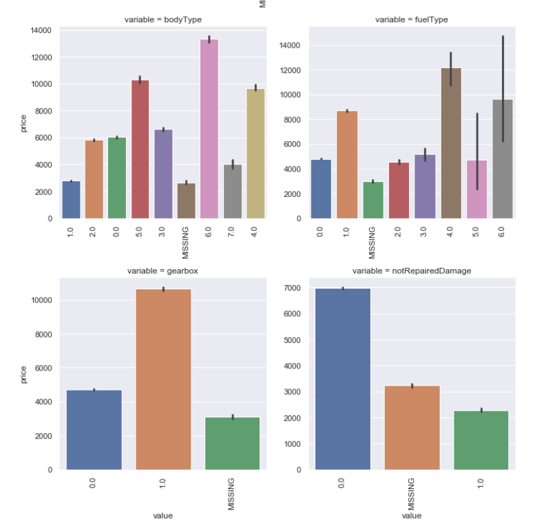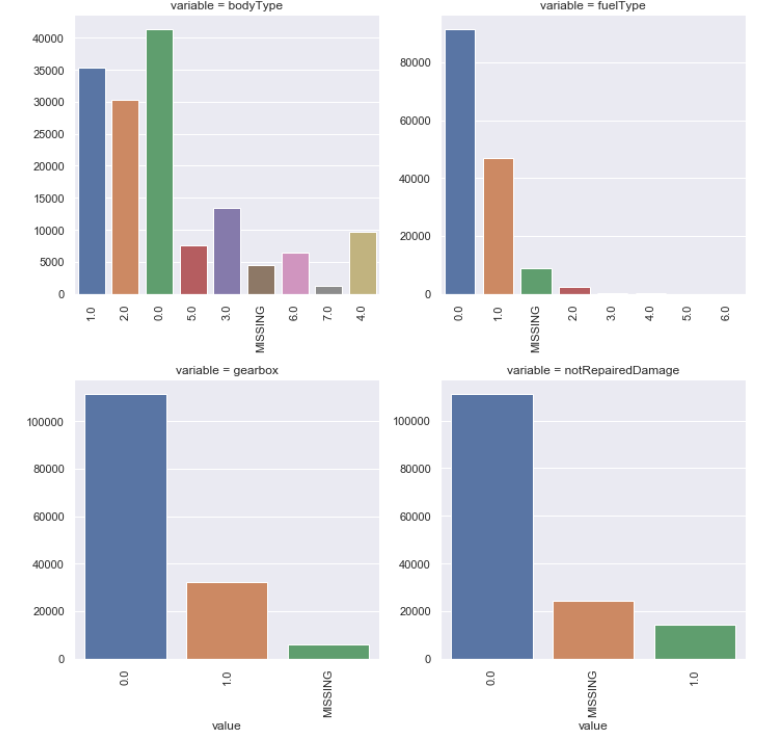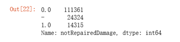 从上面我们可以知道notRepairedDamage的数据类型不是数字,因此我们先来分析此特征。