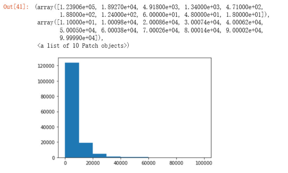 从图中可以看出0到20000的取值占了绝大部分。因此,我们在做模型训练的时候,可以将其视作一条规则。